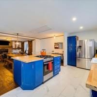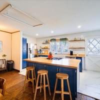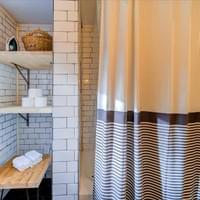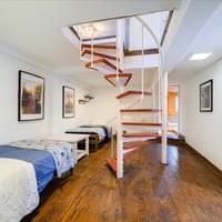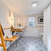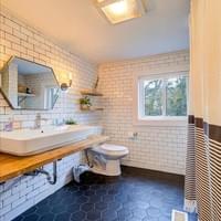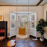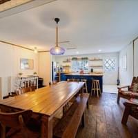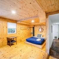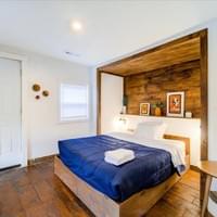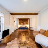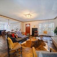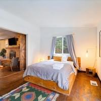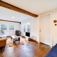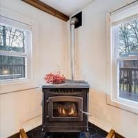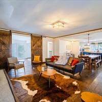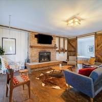 Wide-plank barnwood floors, Sliding barn doors, & wood-burning fireplace