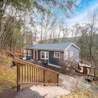 Welcome to Lake View Hideaway at 34 Overlook Road—a proven, income-producing short-term rental perched above Lake Paradise in the heart of the Catskills. This renovated, fully furnished (optional) property is already operating as a successful year-round Airbnb, making it an exceptional turnkey opportunity for investors seeking immediate cash flow with upside. Set back from the road and surrounded by trees, the home offers the privacy and tranquil setting today’s short-term rental guests crave. Inside, rustic-chic design elements—wide-plank barnwood floors, sliding barn doors, and a wood-burning fireplace—create a warm, farmhouse aesthetic that photographs beautifully and performs well on booking platforms. The main level features a spacious living room anchored by a floor-to-ceiling brick fireplace, a large dining area ideal for hosting groups of 10+, and a chef’s kitchen with butcher-block countertops, stainless steel appliances, and an island perfect for gathering. Sliding barn doors open to a balcony with lake and mountain views—an instant guest favorite. This level also includes a bedroom and a fully tiled bathroom with a soaking tub. The mostly finished lower level adds significant rental flexibility and sleeping capacity. Accessible from both inside and multiple exterior entrances, it includes a recreation or game room, a large bedroom with a cozy bed nook, pellet stove, sitting area, and deck access, plus an additional guest room and a second full bath. This layout is ideal for maximizing occupancy and guest comfort. Recent improvements include a new roof, renovated bathrooms, and a re-sealed deck, ensuring low near-term maintenance. The outdoor space is designed for guest enjoyment, with room for grilling, lounging, and evenings around the firepit under the stars. Located within Catskill Park and under two hours from NYC, the home is close to the Neversink and Rondout Reservoirs, Willowemoc and Sundown Wild Forests, Peekamoose Blue Hole, and world-class fishing, hiking, and outdoor recreation. The Neversink General Store and Deli are just minutes away, adding convenience and charm for guests. Move-in and Airbnb-ready, with the option to purchase fully furnished, this property works equally well as a high-performing short-term rental, weekend escape, or full-time residence. Invest where guests already love to stay—schedule your showing today.