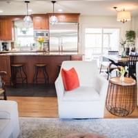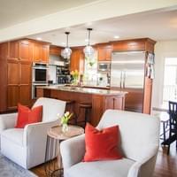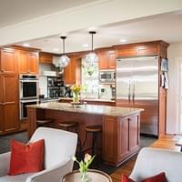 Fully custom Viking kitchen with quartz countertops & eat-at island