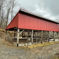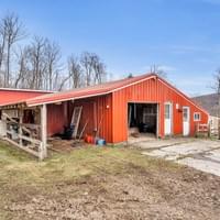 Heated barn (33x53), an enclosed covered animal pen (25x40) and a DEC-engineered waste storage shed – all ready for animal farming or hobby use.