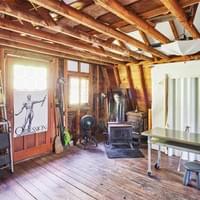 with electricity and a wood-burning stove, is suitable for creating a studio, workshop, remote workspace, yoga/wellness room, or additional seasonal living space